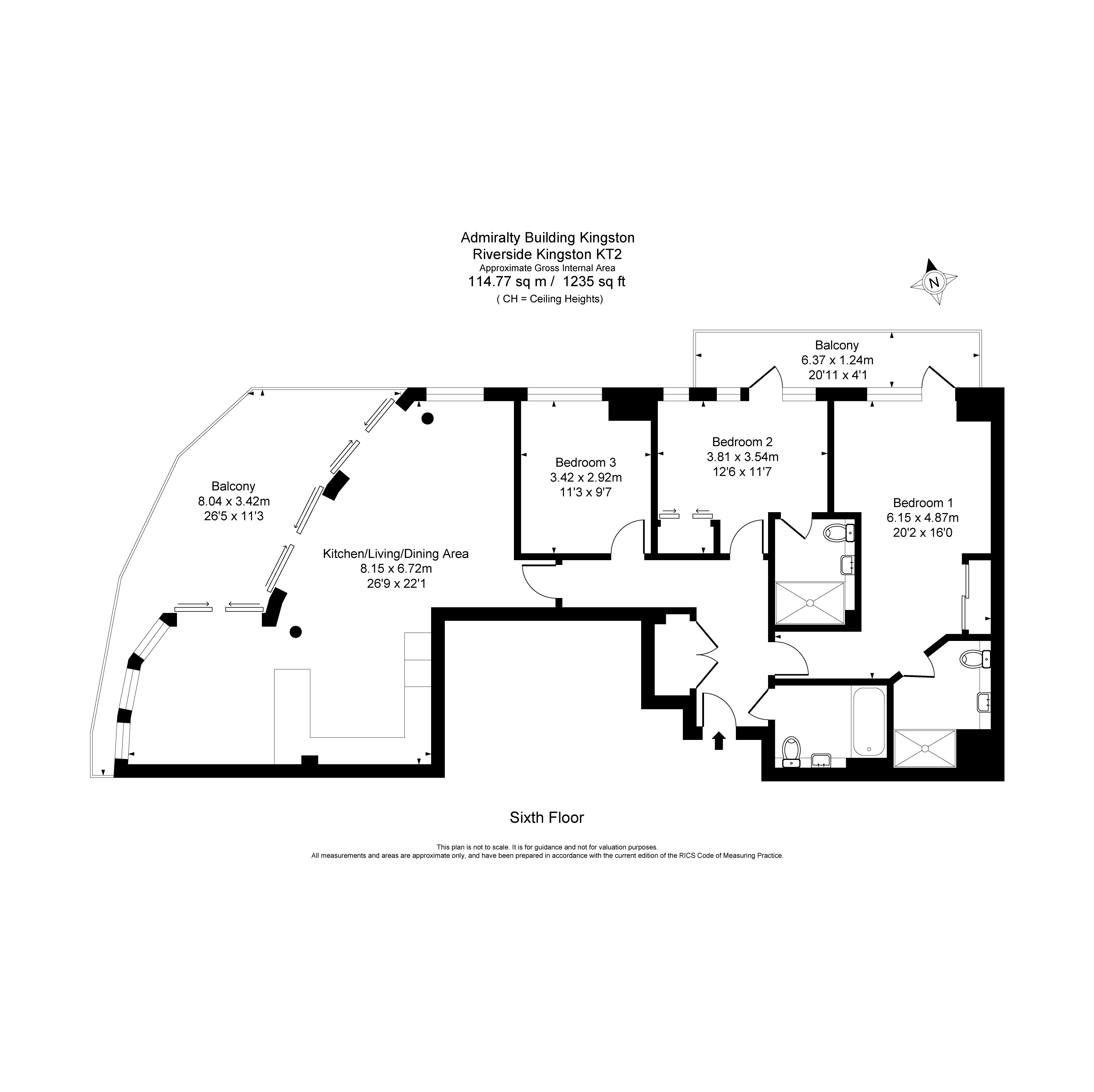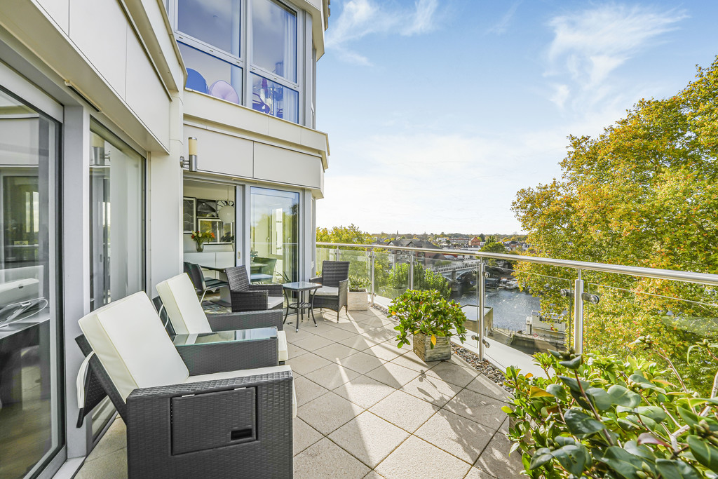 Located within the iconic Kingston Riverside Apartment, a beautifully presented 3 bedroom, 3 Bathroom luxury riverside apartment. Offering stunning far-reaching views over the river Thames and Canbury Gardens, this exceptionally spacious apartment is located on the 6th floor of the Admiralty Building, and boasts approximately 1,235 sq ft of internal living space, and extensive private external space, including a terrace and further balcony.