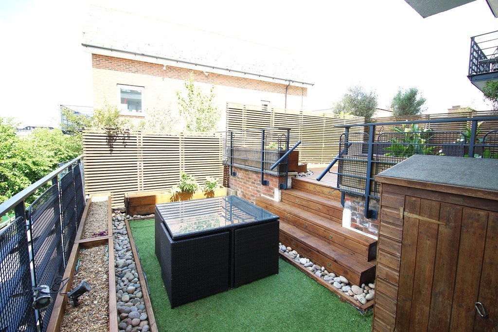 A stunning 2 bedroom apartment with a private balcony and an extensive split level terrace.