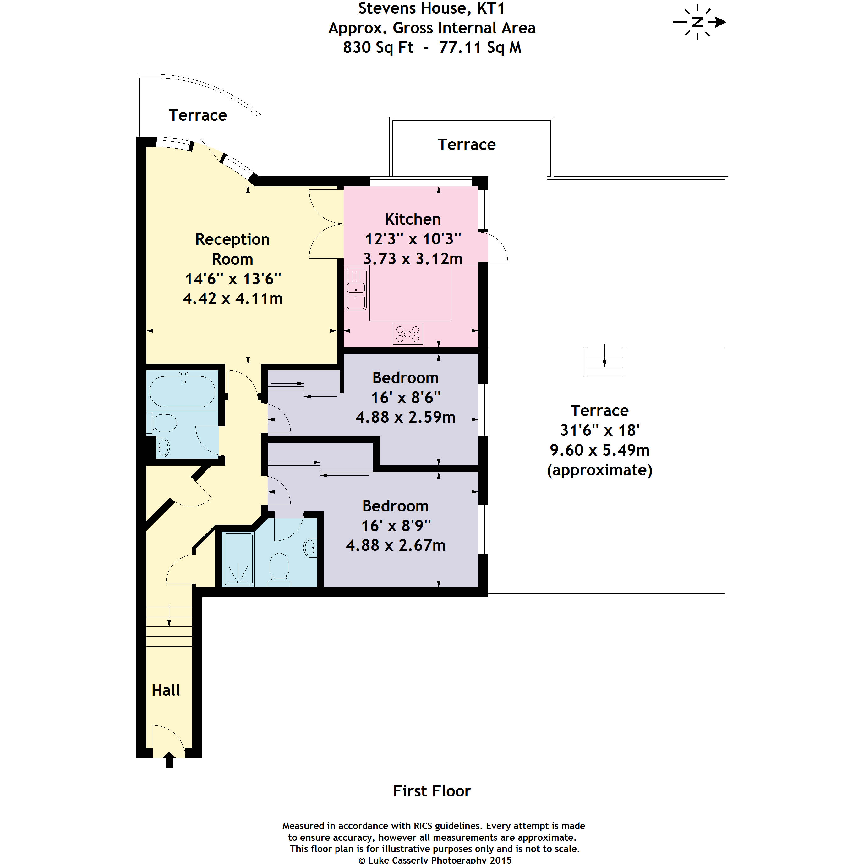 The property is located on the 1st floor with 830 sq ft of internal living space, and is offered to the market chain free.