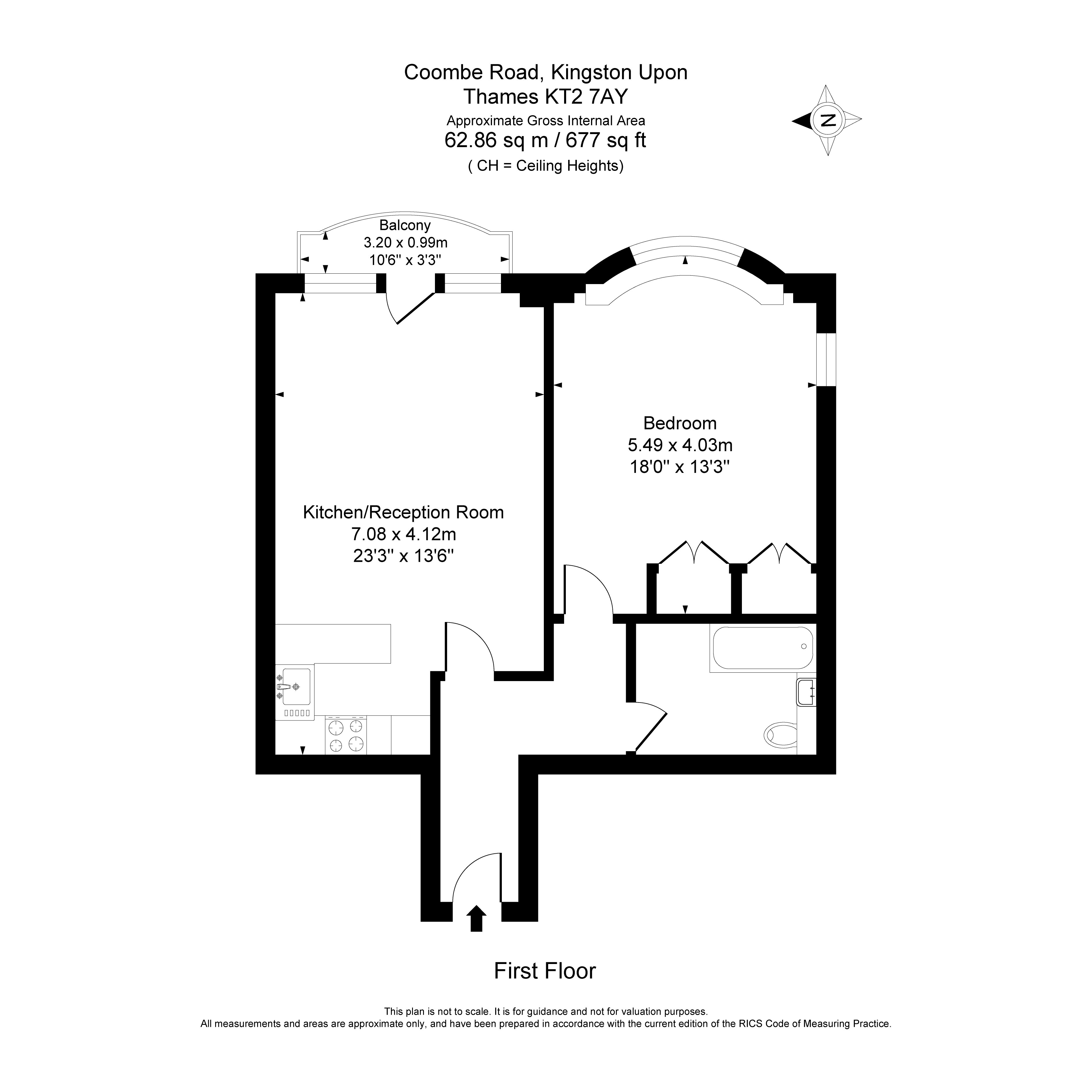 The apartment is located on the 1st floor and offers 677 sq ft of internal living space.
