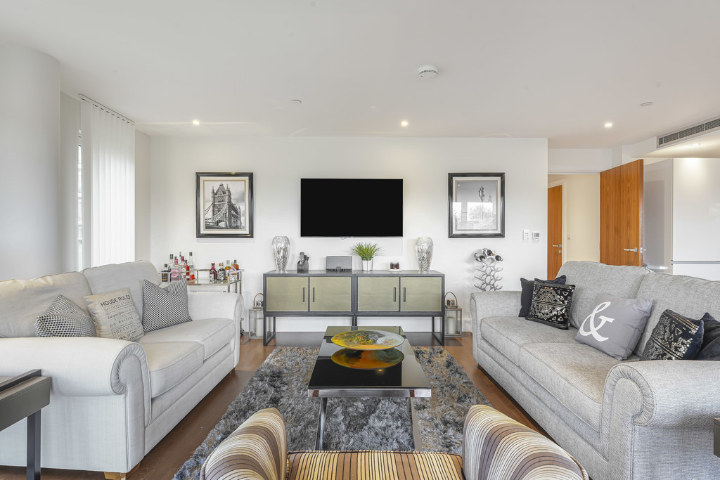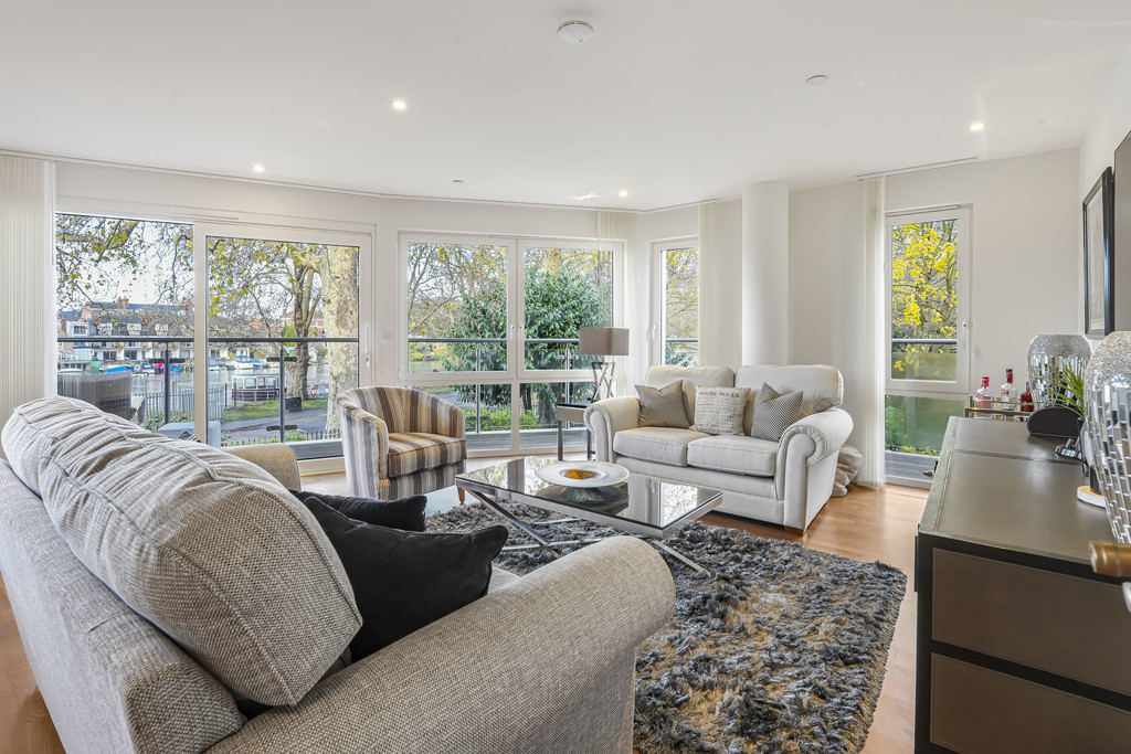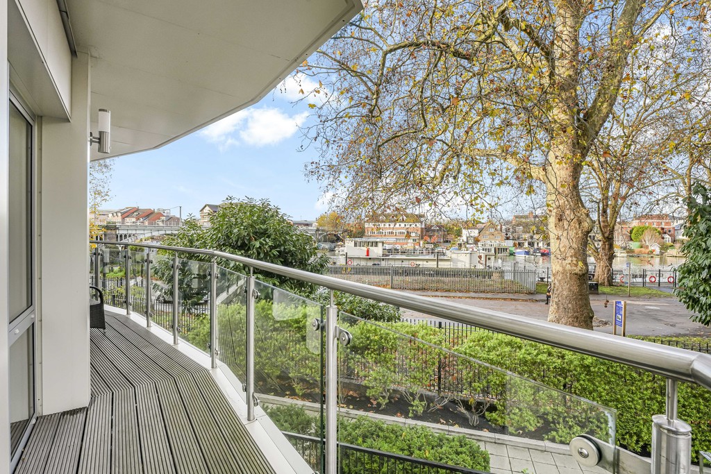 Luxury two bedroom riverside apartment, with a 249 sq ft wrap around balcony and stunning views over the River Thames.