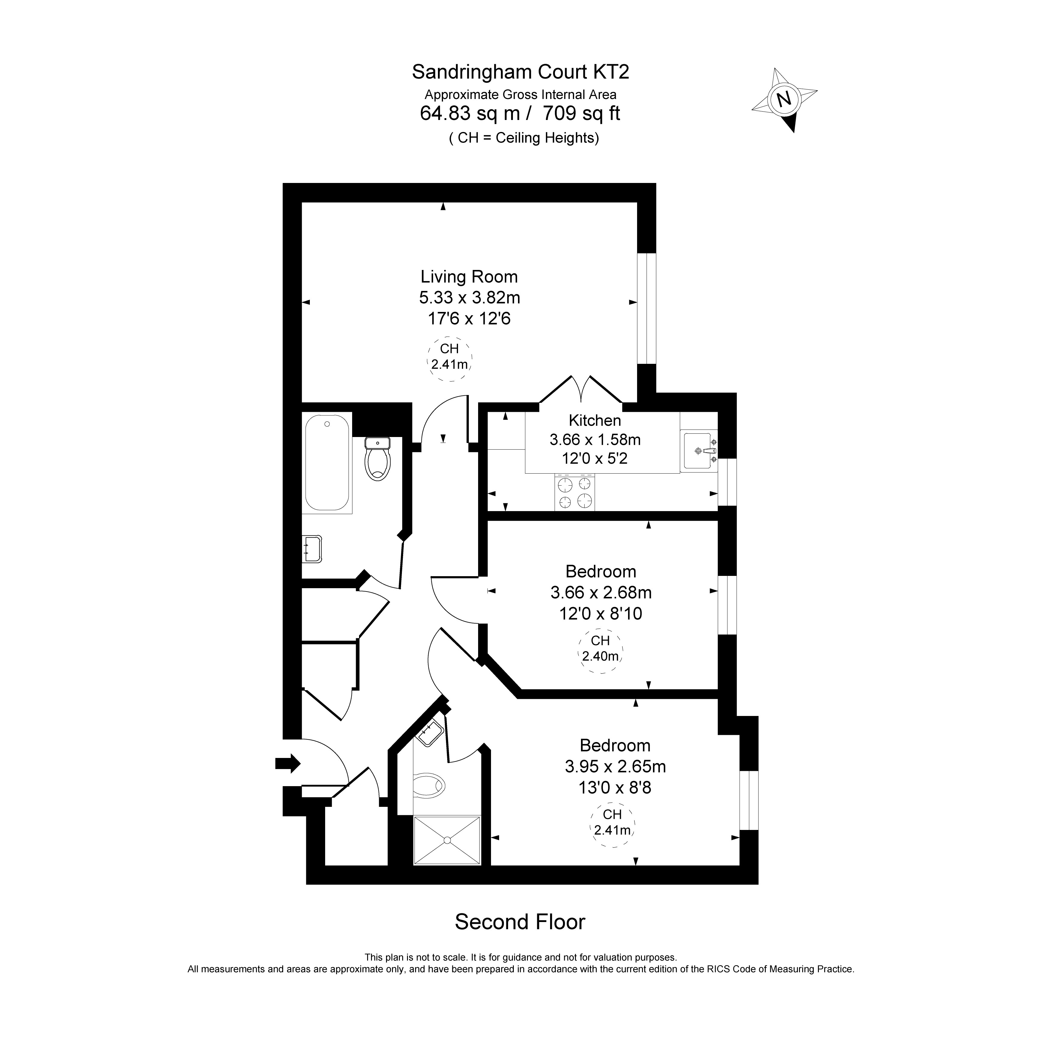 Situated on the 2nd floor of Sandringham Court, and offering 709 sq ft of internal living space, this exceptionally well presented apartment also comes with an allocated parking space. Spacious Reception / Dining Room with doors opening to a separate fully fitted modern kitchen. Principal bedroom with fitted wardrobes and an ensuite shower room, further bedroom and a spacious modern bathroom suite. Sandringham Court is conveniently situated on Skerne Walk which is a traffic free road within a few minutes’ walk of Kingston's Historic Town Centre, the river Thames, Royal Bushy Park and Kingston's Mainline Station with frequent trains to London Waterloo. Offered to the market with no onward chain.