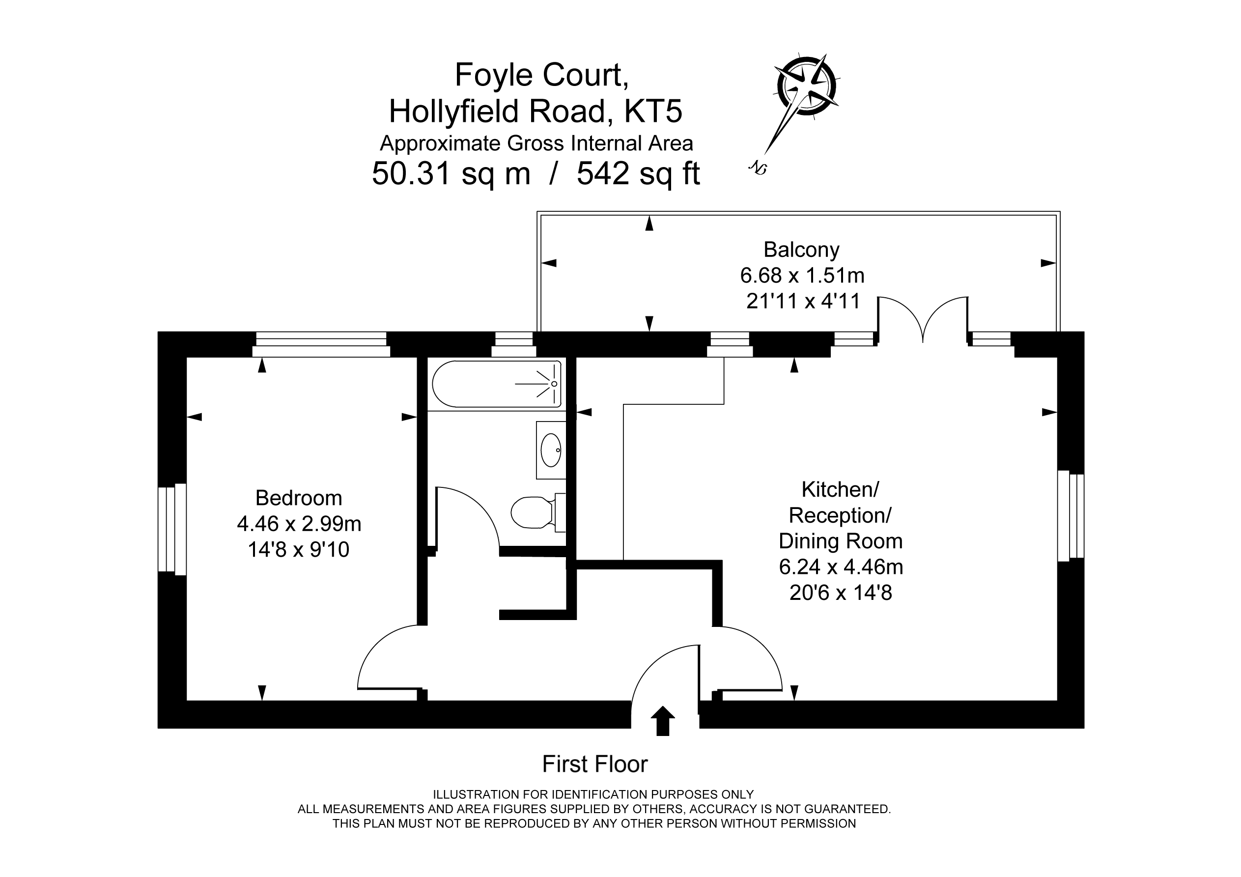 Foyle Court, a brand new boutique development of just 7 luxury homes. This 1 bedroom apartment is located on the 1st floor of Foyle Court and boasts, 542 sq ft of internal living space with a private balcony. An exclusive development of just 7 brand new apartments ideally situated on Hollyfield Road, directly opposite Fishponds Conservation area, a haven and tranquil retreat with parkland, ponds and wildlife. All 7, high specification apartments have been finished to an exemplary standard and are located within a short walk to Surbiton Station with frequent high speed trains, taking just 19 minutes to London Waterloo. Please note floorplans and images are for illustration purposes only, some images are taken of a previous development.