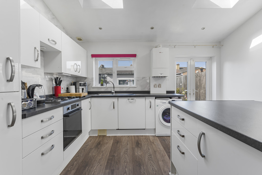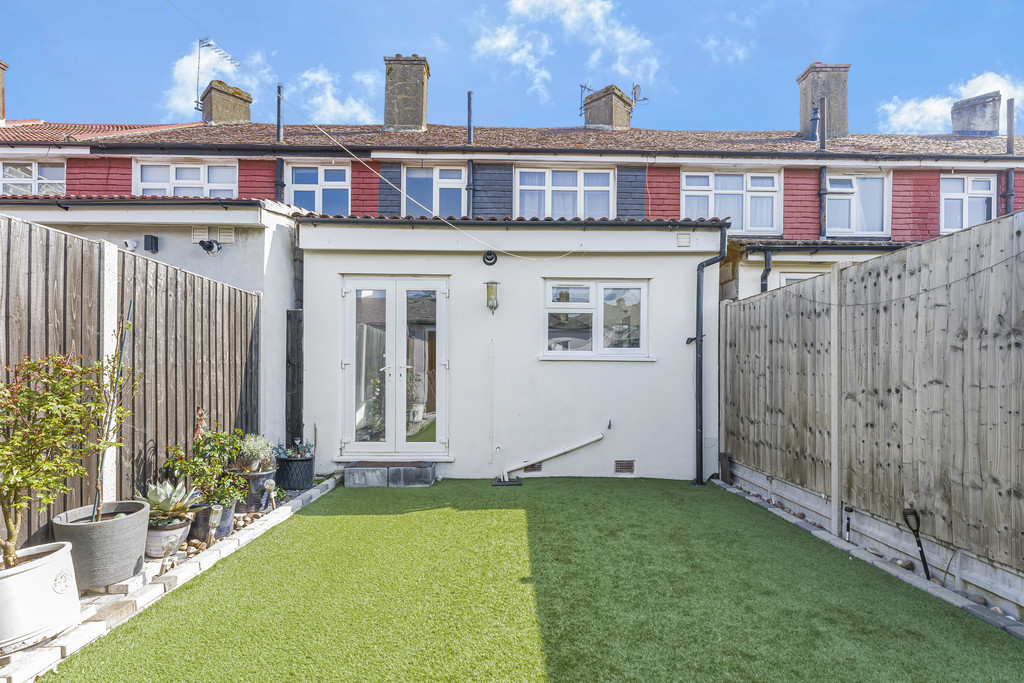 OPEN DAY SATURDAY 2ND MAY - An extended and well presented three-bedroom terraced house, situated in a quiet cul-de-sac and benefits from off-street parking to the front and a garage to the rear. The ground offers wood flooring throughout, a good size front reception room, a modern fitted kitchen with built in appliances and open plan to dining area with direct access to a private sunny garden . The 1st floor offers to double bedrooms, a further single bedroom and a modern fitted white bathroom suite. The garden is south west facing laid to Astro turf and direct access to a full garden width garage with a separate storage room, the garage has an electronic up and over door with access from the rear slip road. Vendor suited with closed chain, viewings highly recommended